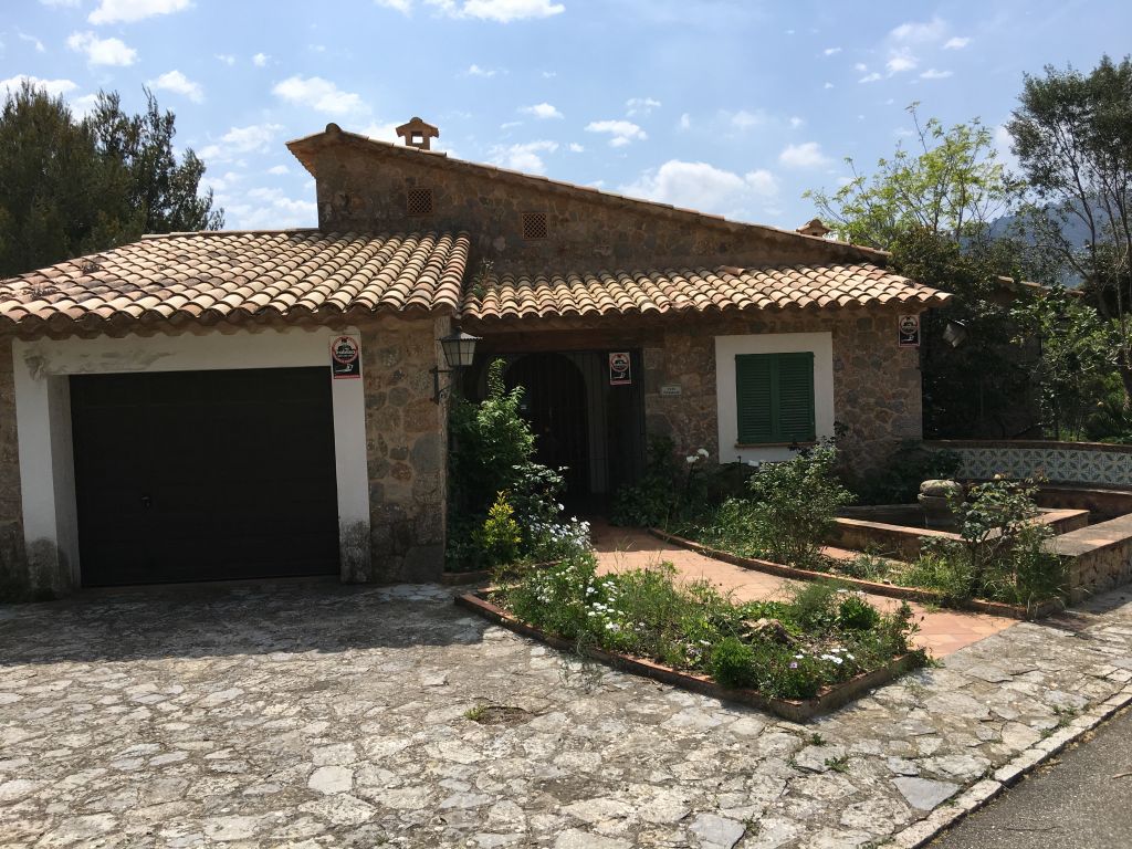 EXCELENTE OPORTUNIDAD!!!! Casa de piedra en Valldemossa de 270 metros cuadrados edificada en un solar de 2.000 metros cuadrados en una tranquila urbanización de pocos vecinos y a tan solo 500 metros del pueblo, tiene magníficas vistas a la montaña y al pueblo y consta de: entrada con jardín y un estanque, dos plantas, en la planta baja tiene cuatro habitaciones, dos baños (uno de ellos en suite), una gran sala de estar con chimenea y cocina-office con comedor, garaje con puerta automática, alarma, solárium, y un aljibe cubierto. En la planta inferior: dos habitaciones sala de estar-comedor con estufa de leña, un baño y una terraza cubierta. Sala de máquinas y un gran trastero.. . Suelos de gres rústicos, vigas vistas, armarios empotrados, calefacción gasoil, carpintería interior y exterior de madera, persianas mallorquinas de madera.. . MUCHAS POSIBILIDADES DE MEJORA!!!! NO SE PIERDA LA OPORTUNIDAD DE VISITARLA.. . .