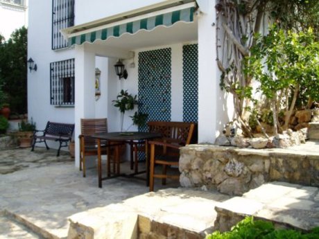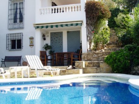 Chalet independiente situado en tranquila urbanización de Benajarafe, localidad costera situada próxima a Torredelmar y al Rincón de la Victoria y a escasos kilómetros de Málaga capital. Bien comunicado por autovía.El chalet consta de cuatro dormitorios, salón con chimenea, salón comedor y salón biblioteca. Dos baños completos, uno de ellos con hidromasaje. Un aseo. Dos trasteros. Seis armarios empotrados y cocina. En el exterior dispone de dos porches, barbacoa, piscina y jardín privados con abundante vegetación y dotado de riego automatizado.La parcela está rodeada en su mayor p... Leer más
