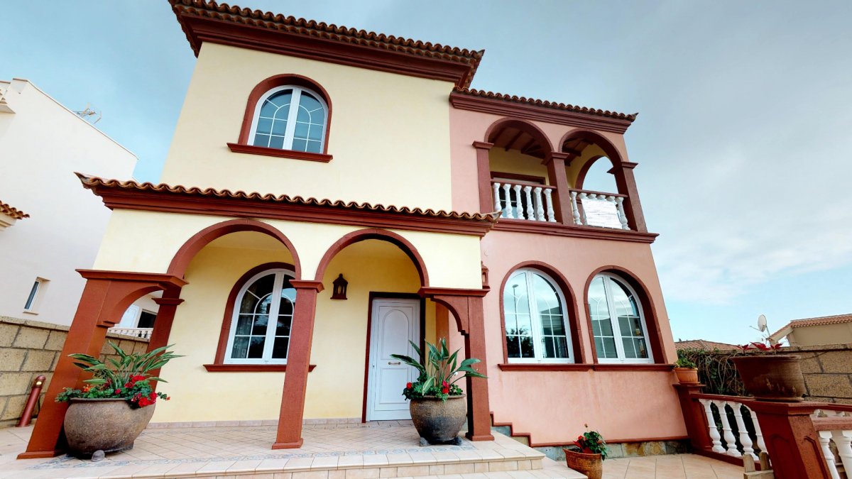 Una hermosa villa de 4 dormitorios y 4 baños en el corazón de Los Olivos, Adeje. Zona muy solicitada, tranquila y residencial. Brillantemente planeado, con mucha luz natural, fue construido en el año 2000 con materiales de la mejor calidad. La primera planta cuenta con un dormitorio / oficina, un baño completo, salon luminoso y una cocina con comedor y acceso al jardín. El segunda planta consta de tres habitaciones con tres baños en suite. El dormitorio principal también tiene un vestidor y una terraza separada. Además, la villa cuenta con un hermoso jardín de 220m2, amplio garaje de 125m2 y una terraza en la azotea con impresionantes vistas. El jardín tiene una puerta trasera con acceso al camino peatonal que conduce al parque.. La villa también se beneficia de paneles solares y ventanas de doble acristalamiento y giro basculante. Sistema centralizado de aspiración y sistema de música centralizado. Existe la posibilidad de instalar un ascensor en la casa y una piscina en el jardín. La escalera, ubicada en el centro de la casa, tiene una hermosa cúpula de cristal tintado. La villa es una joya escondida. Perfecto para una gran familia.. . Precio de venta: 890.000 euros (impuestos, gastos notariales y de registro no incluidos en el precio).